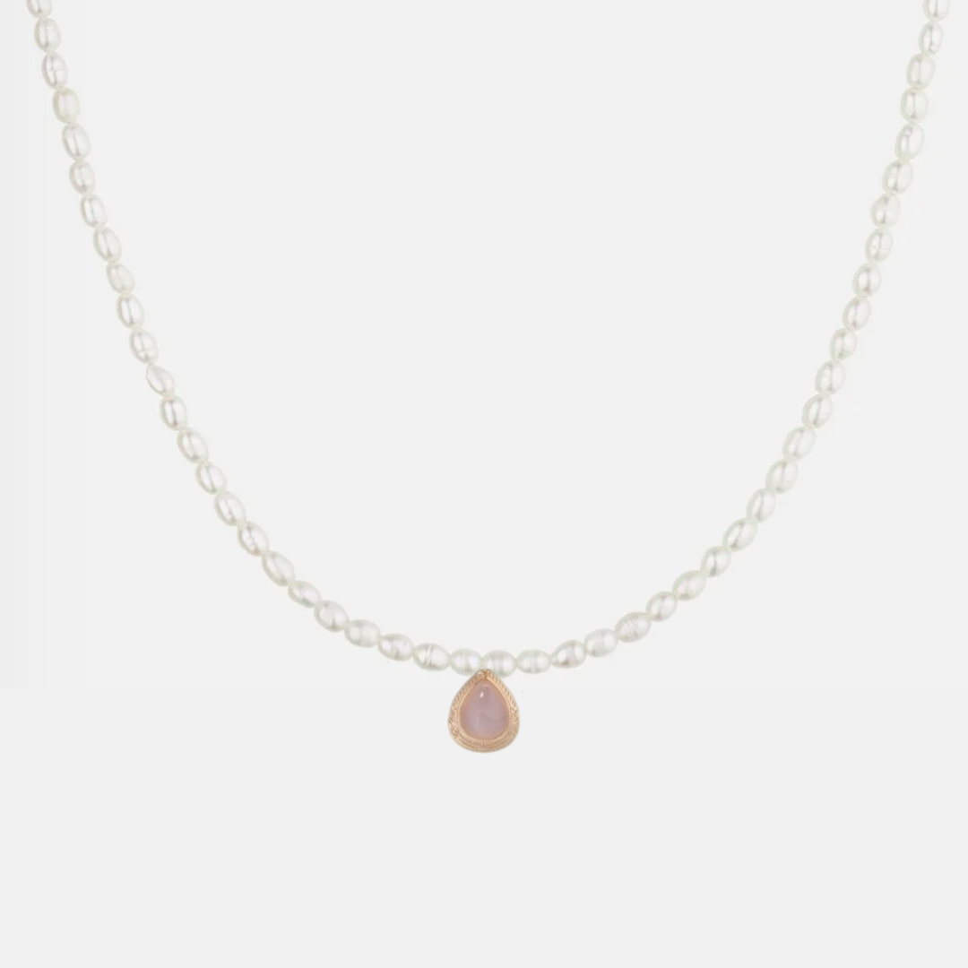 9k Solid Yellow Gold Weight: 6.87g Natural Fresh water pearl 3-4 mm Pendant: Single Natural Sunstone Chain Style: Seed Bead Chain with 9K Gold Tail Chain Certificate: Included