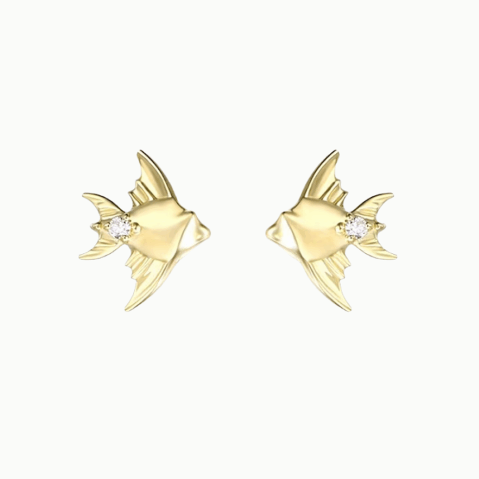 Elegant Goldfish Stud Earrings in 9K Gold with Natural Sapphire