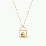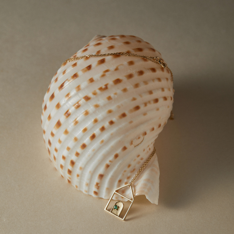 Minimalist Gold House Pendant Necklace with Natural Emerald